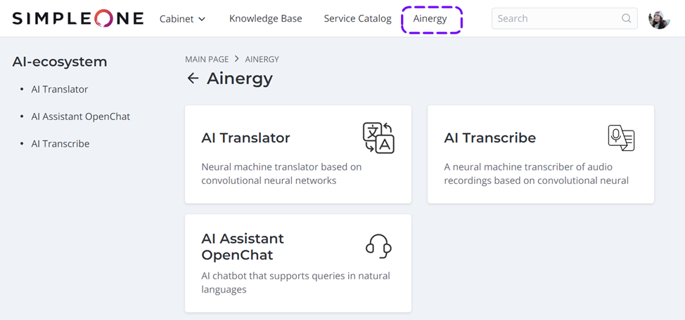Ainergy легко освоить пользователю, знакомому с системой SimpleOne: решение органично вписывается в агентский интерфейс и пользовательский портал.