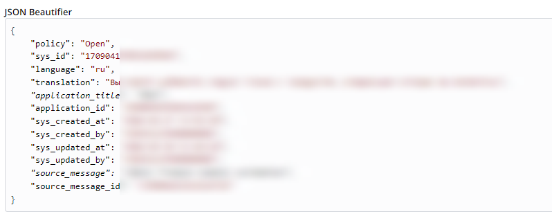 В JSON Beautifier добавляются названия таблиц, колонок, виджетов
