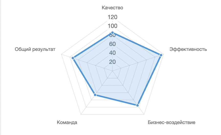 Допустим, приоритеты компании: Качество (40%), Эффективность (25%), Бизнес (25%), Команда (10%).