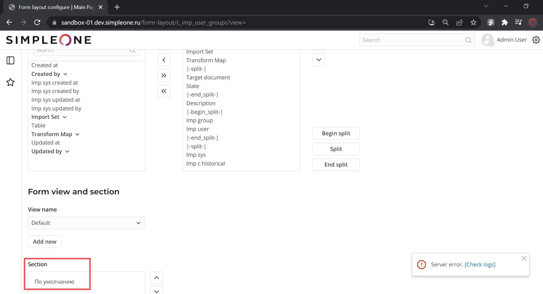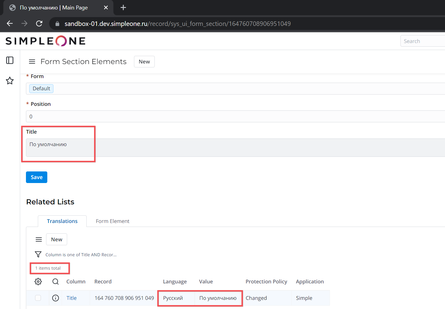 Для каждого представления формы должна быть определена секция с названием Default/По умолчанию. Причина ошибок при настройке представления в том, что для связанной с представлением Default секции [sys_ui_form_section] отсутствует английский перевод для поля title (скриншот 1)