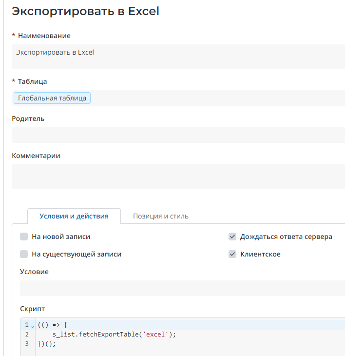 Оказывается, после версии 1.20.1 создание отчета доступно только с помощью вызова s_list.fetchExportTable(‘excel’).