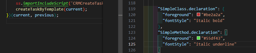 The extension adds syntax highlighting for SimpleOne API classes and methods in JS files.