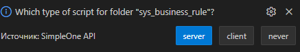To use the extension, you must associate scripts with a specific API type (client or server). To do this, simply open any JS file after installing the extension and select the association for the folder containing the file in the pop-up window. Associations are applied to all files in the folder, so we recommend storing scripts of different types in separate folders.