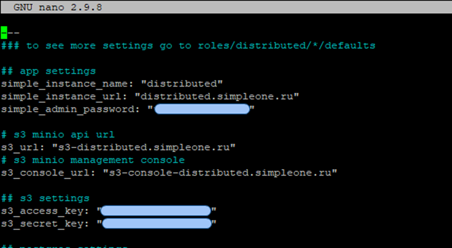 Заполнение переменных inventory/[single,distributed]/group_vars/all/vars