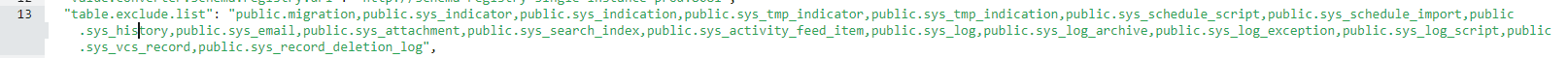 Содержимое переменной table.exclude.list необходимо заменить на: