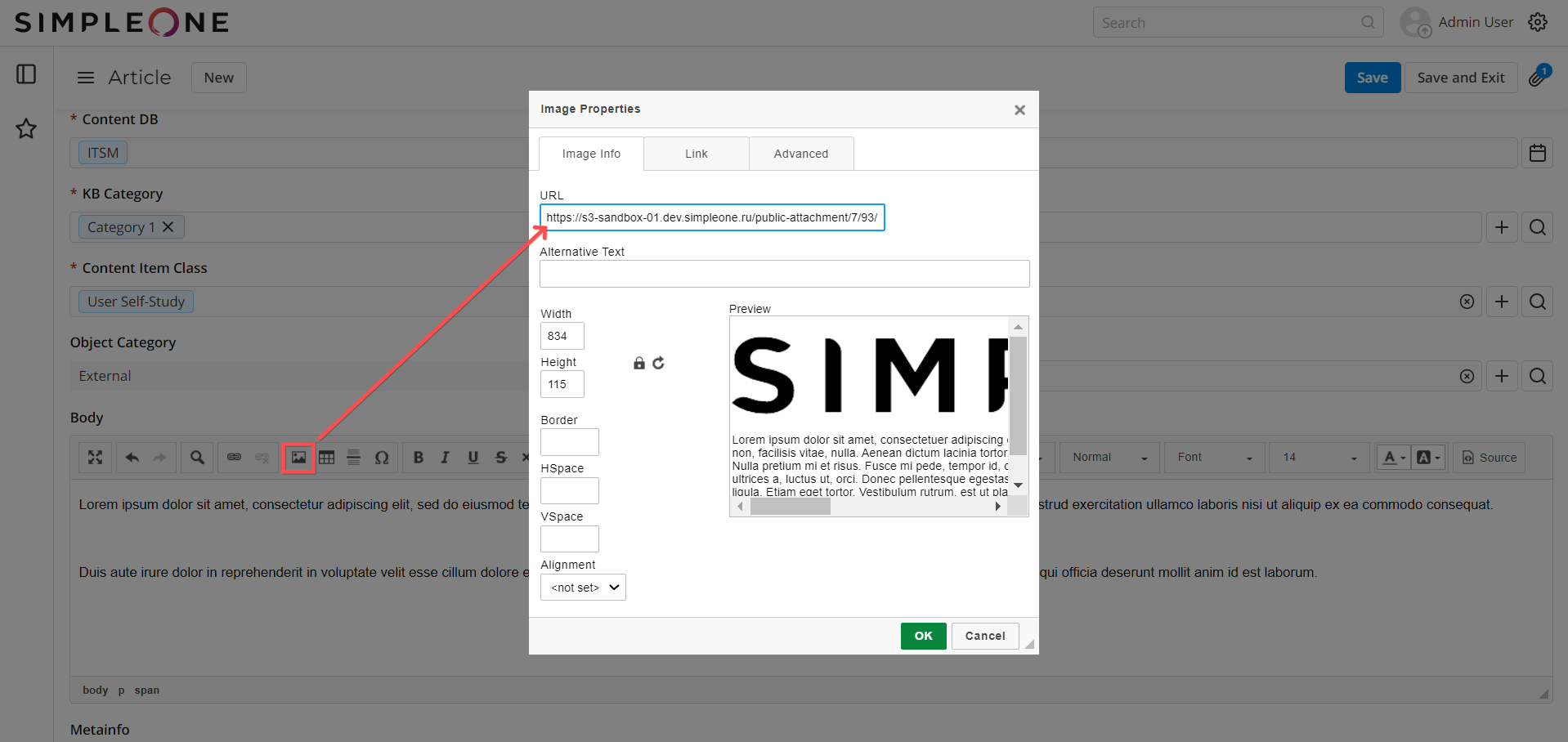 - Прикрепить необходимые картинки к записи с полем HTML. В случае со статьями БЗ это записи в таблице Article.