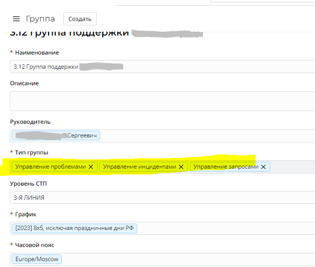 Т.к. справочник групп универсальный и может использоваться в разных процессах (IM, Req, ChM) и даже механизмах (группы согласования, например), чтобы ограничить список доступных пользователю значений для выбора, в группу добавляется классификатор, который определяет список объектов для которых текущая группа будет доступна: инциденты, проблемы, запросы, группа согласования и т.п.